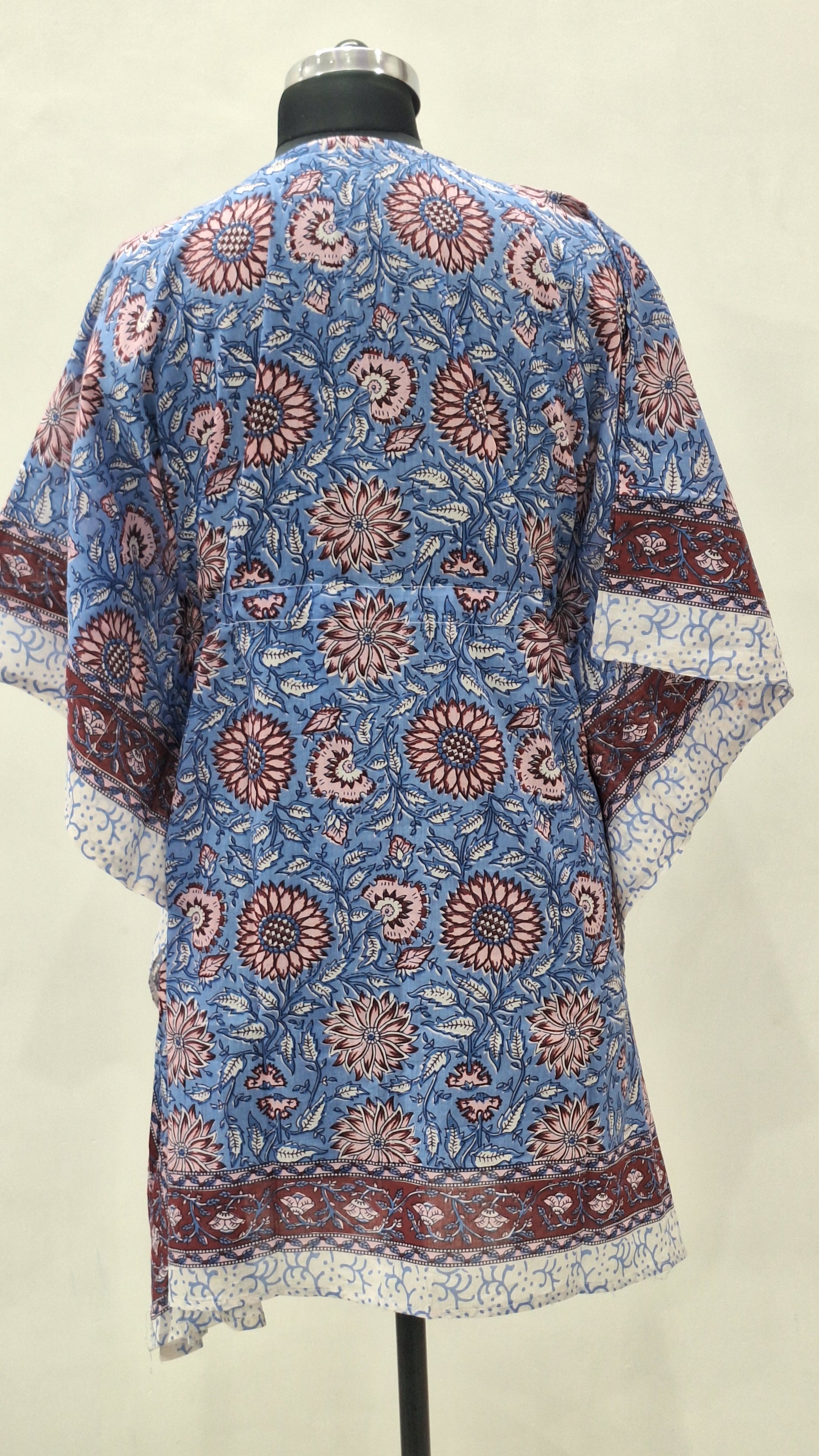 Blue Lotus Floral Block Print Short Kaftan