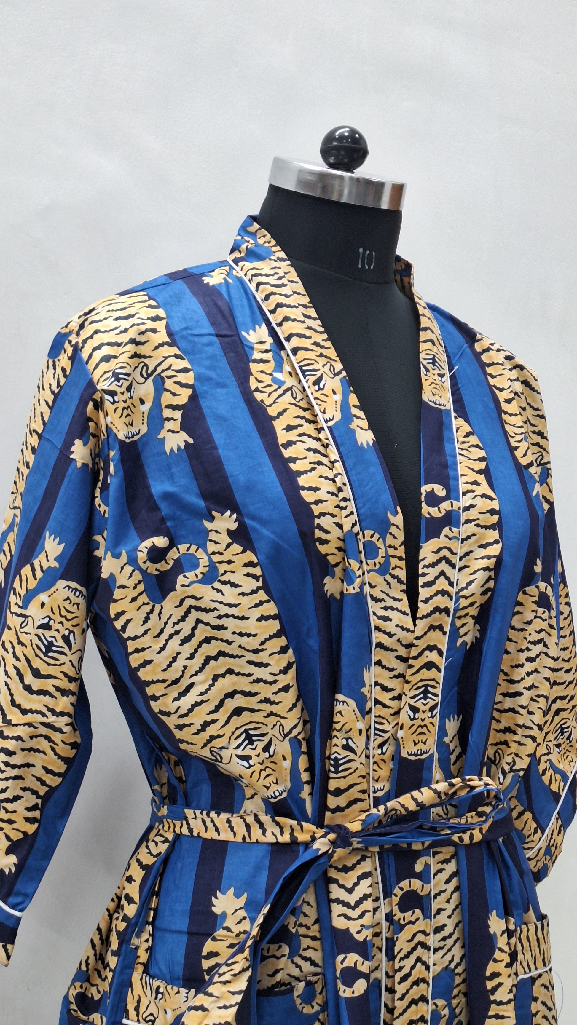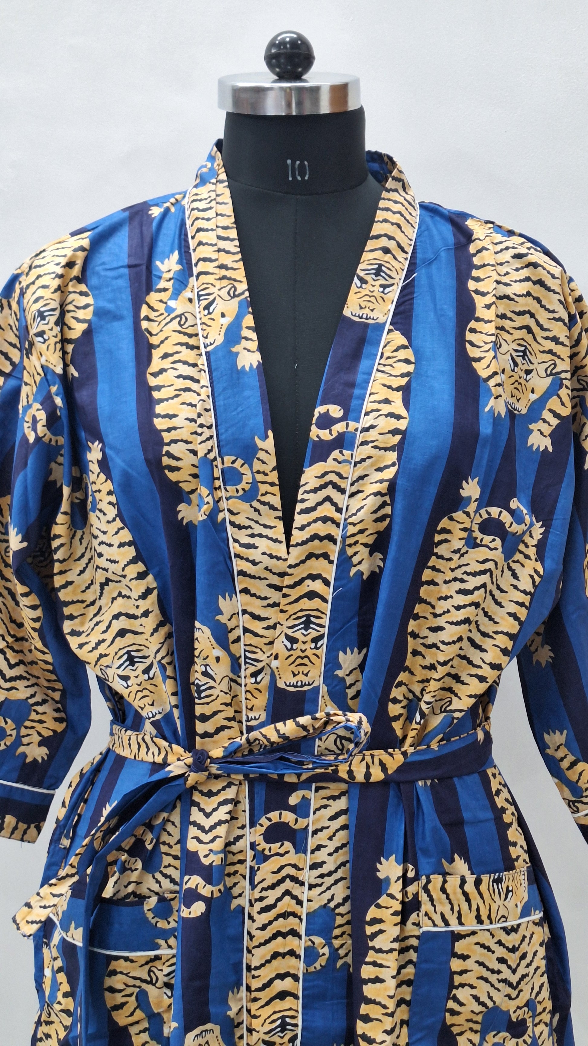 Midnight Tiger Stripe Unisex Cotton Bathrobe