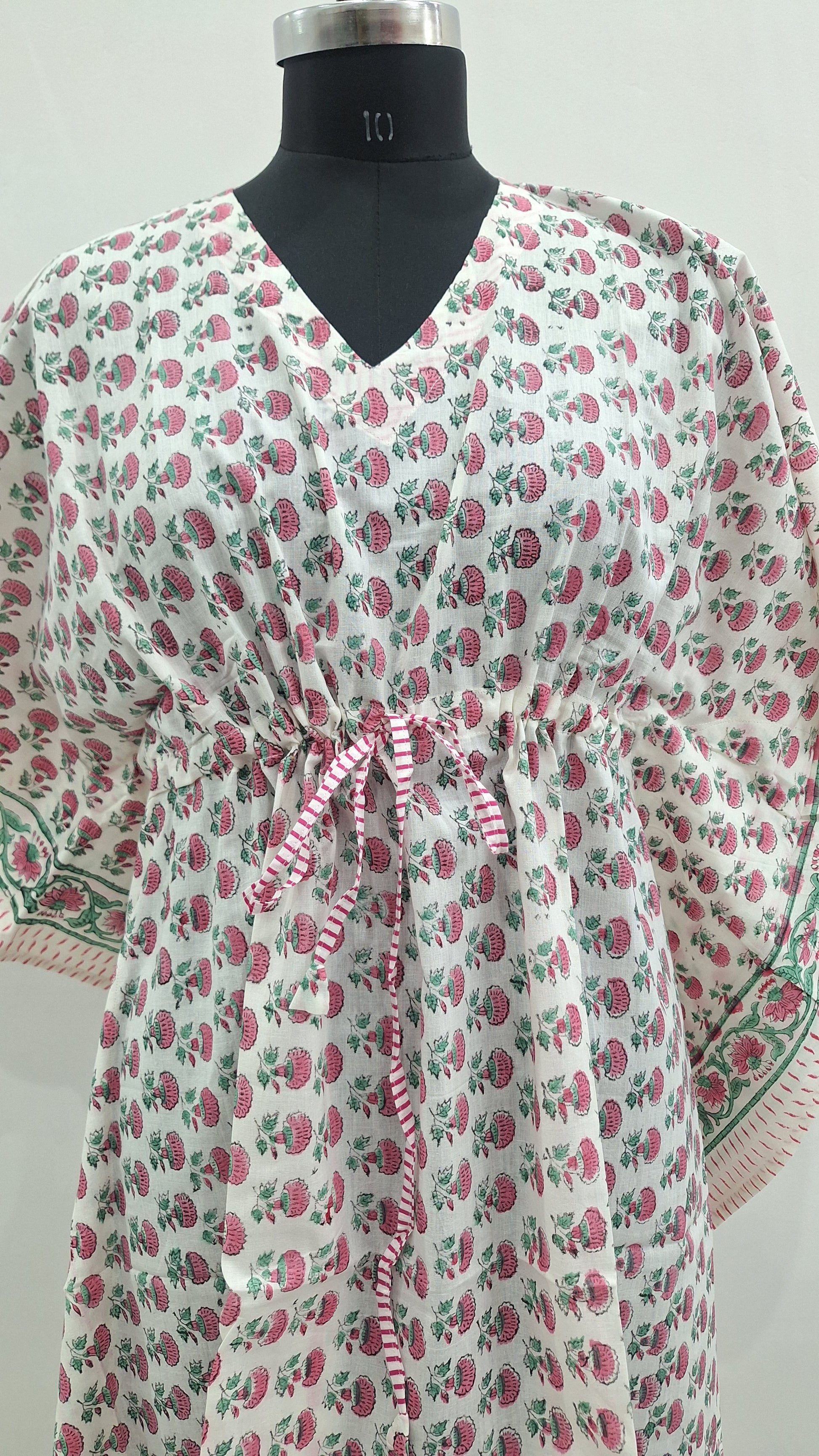 Pastel Floral Hand Block Print Cotton Kaftan