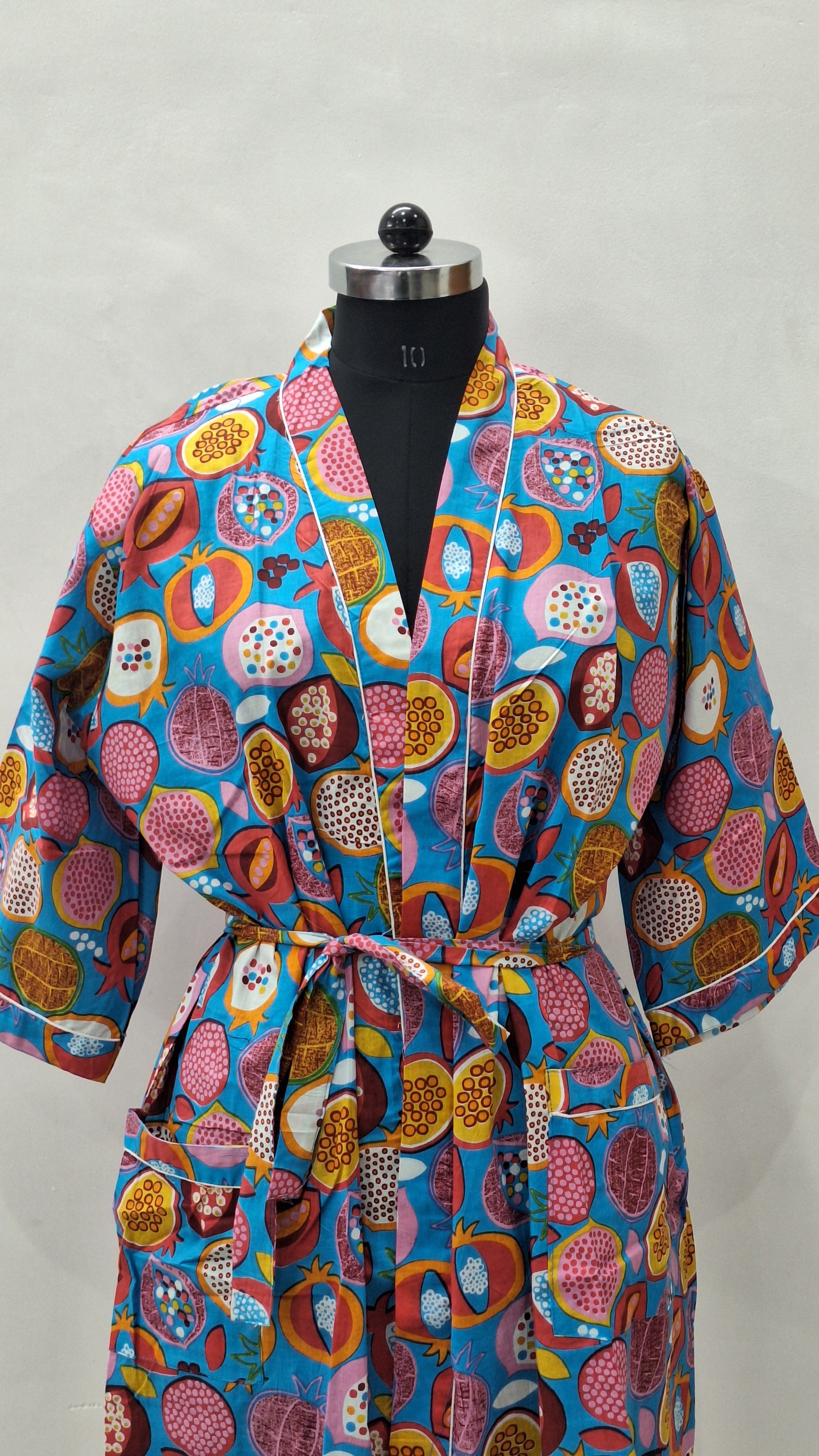 Pomegranate Pop Blue Cotton Bathrobe | Unisex Lounge Robe