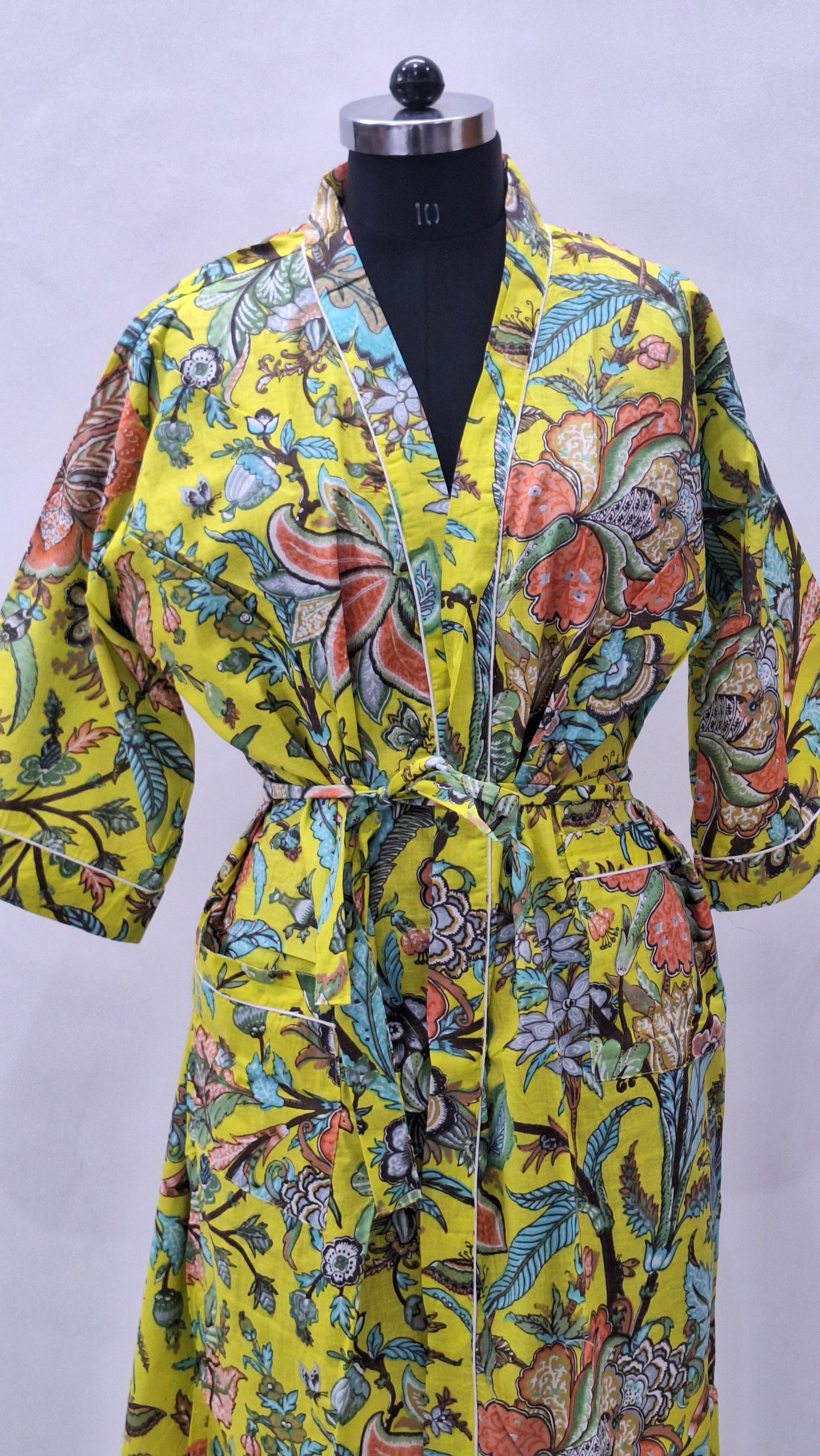 Yellow Bloom Botanical Print Cotton Cambric Bathrobe